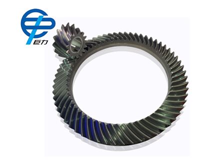 礦山圓錐破碎機(jī)傘齒輪,整機(jī)用于礦石粉碎等領(lǐng)域,承載能力功率大,故這類齒輪一般大輪外形都較大,一般速比大于5。材質(zhì)一般是大輪采用合金鋼42CrMo,小輪采用20CrMnTi,傳動(dòng)效率一般為0.94~0.98。